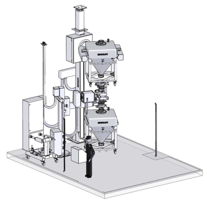 Der Prozess erfolgt in einem geschlossenen System, das durch die IBCs (Intermediate Bulk Container) und die Dichtsysteme der High Containment Butterfly Valves (ChargePoint Split Butterfly Valves - SBVs) definiert wird: