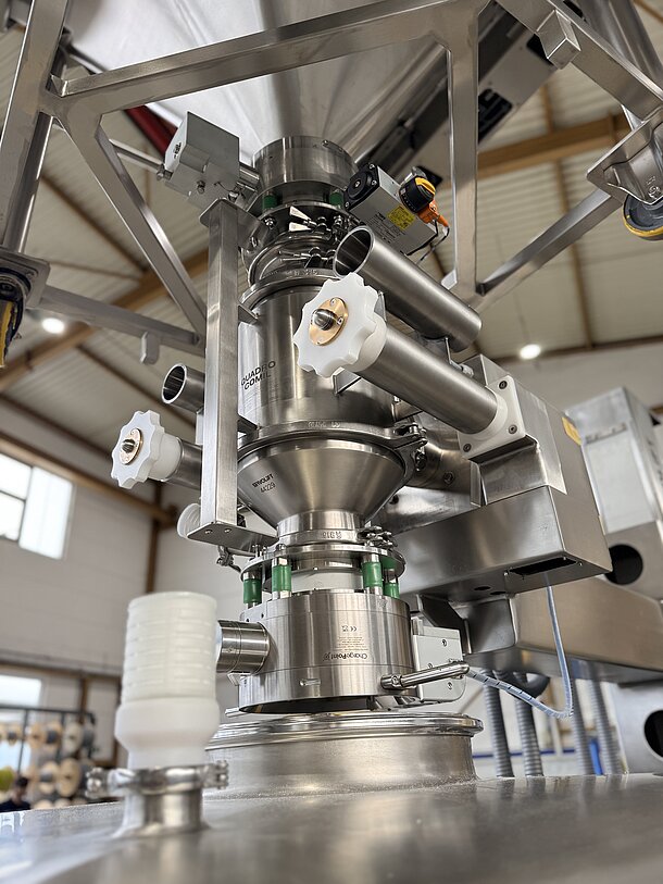 - Der Passive SBV des oberen IBC wird an das Automatische Aktive SBV (ChargePoint) am Einlass der Mühle angedockt.