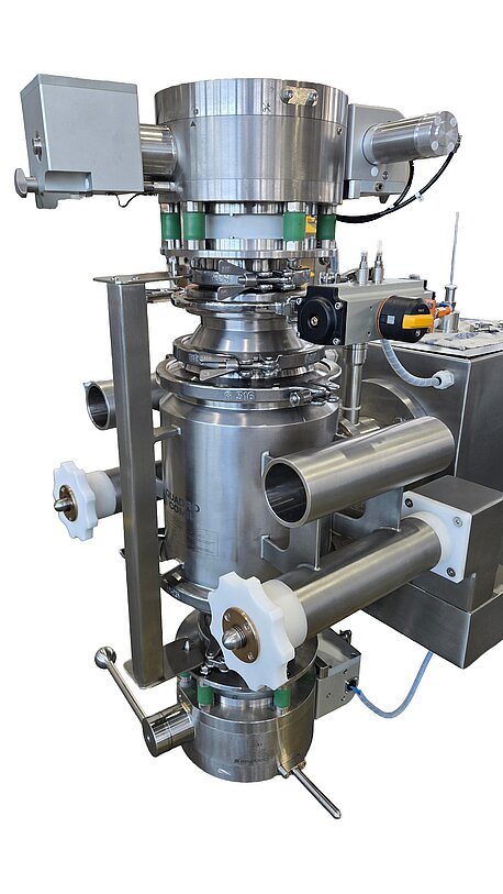 - In der Mühle wird das Produkt auf die erforderliche Partikelgröße zerkleinert. Die Mühle umfasst eine Vermahlungseinheit und ein integriertes Dosierventil (Rotary Valve).