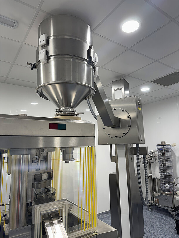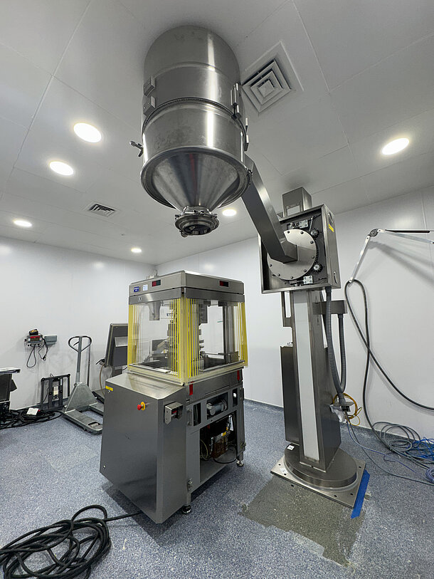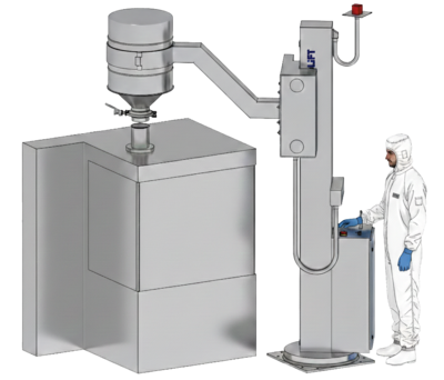 Die Lösung erfüllt alle pharmazeutischen Anforderungen an Reinraumtauglichkeit, OEB‑freundliches Handling und Bedienersicherheit.